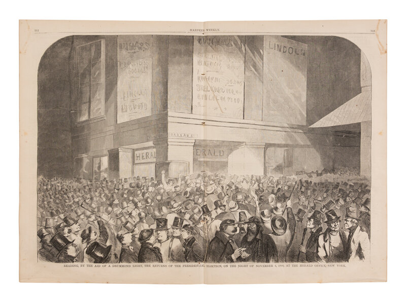 TWO ISSUES OF THE LEGENDARY AMERICAN POLITICAL MAGAZINE WITH FRONT PAGE COVERAGE OF THE NOMINATION AND ELECTION OF ABRAHAM LINCOLN TO THE PRESIDENCY.