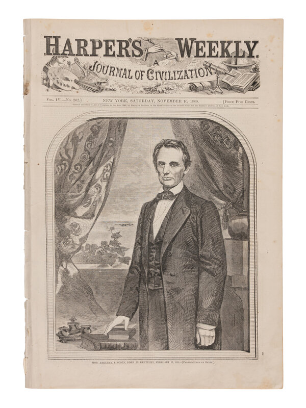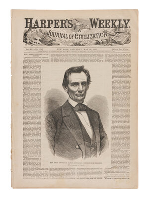 [LINCOLN-HAMLIN CAMPAIGN]. A pair of Harper's Weekly issues profiling Abraham Lincoln, comprising: 26 May and 10 November, 1860.