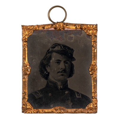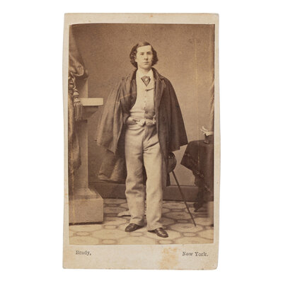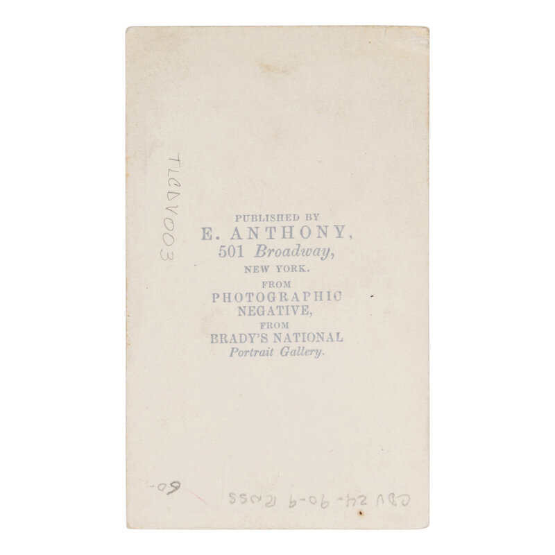 2 CDVs by Mathew Brady, each 4 x 2 1/4 in.; sixth plate tintype printed by Abbott & Co., Nassau, NY, in gilt frame, overall 1 3/4 x 1 1/4 in.