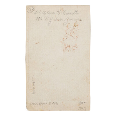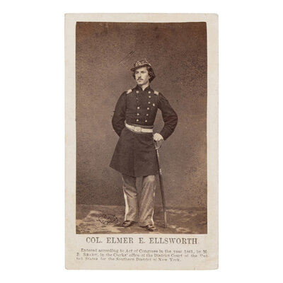 Colonel Elmer Ephraim Ellsworth was a United States Army officer and close friend of President Abraham Lincoln, who initially made his acquaintance in 1860 after moving to Springfield to work as a clerk at the Lincoln-Herndon Law Offices. Following Lincoln winning the Republican nomination for president, Ellsworth became an invaluable member of Lincoln's campaign staff, with Lincoln jovially describing the 5'6" Ellsworth as "the greatest little man I ever met." Following Lincoln's victory, he accompanied the president to Washington, and after the Confederate attack on Fort Sumter, raised the 11th Volunteer New York Infantry Regiment.