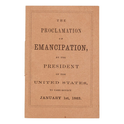 THE SCARCE SEVENTH EDITION of the preliminary version of the Emancipation Proclamation, and the only contemporary pamphlet printing. Lincoln's preliminary Emancipation Proclamation was dated 22 September 1862, while the revised, final document became official on 1 January 1863.