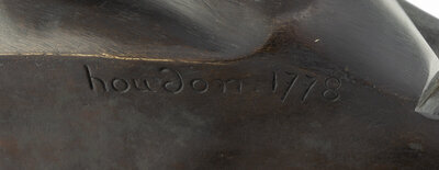 inscribed "Houdon 1778" on the right shoulder, mounted on an alabaster socle