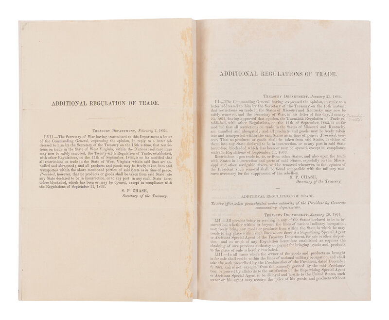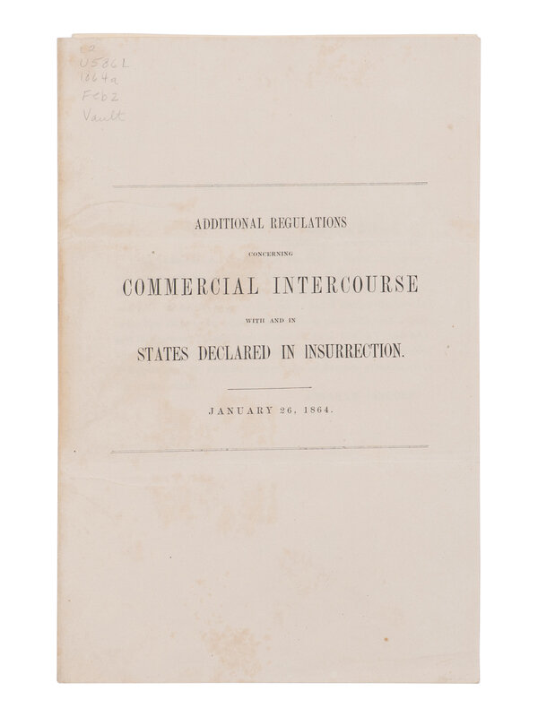 LINCOLN, Abraham (1809-1865). Additional Regulations concerning Commercial Intercourse with and in States Declared in Insurrection. January 26, 1864. N.p., n.p., 1864.