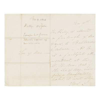 LINCOLN, Mary Todd (1818-1882). Autograph letter signed ("Mrs. L") to Secretary of War Edwin M. Stanton, [Washington, D.C.], 9 November 1864.
