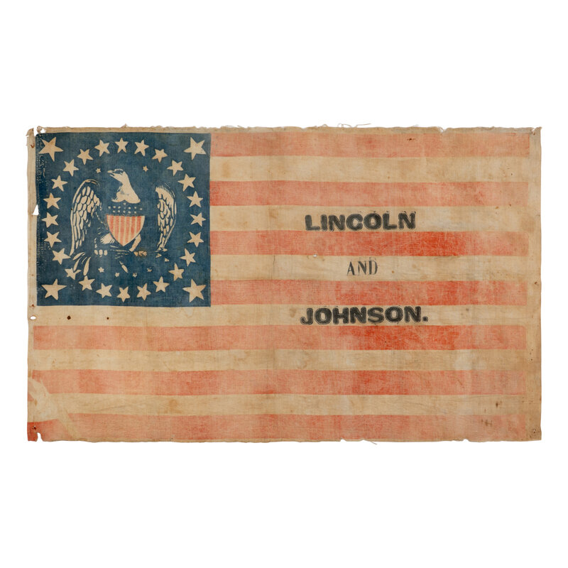 [LINCOLN-JOHNSON CAMPAIGN]. An exceedingly rare 34-star eagle parade flag, ca 1863-1864.