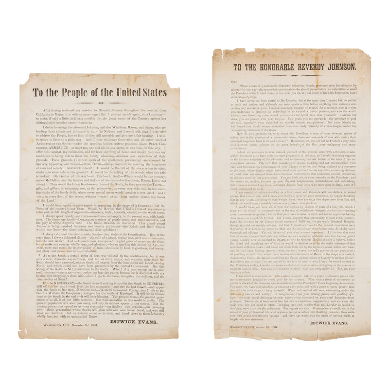 [LINCOLN-JOHNSON CAMPAIGN]. EVANS, Estwick (1787-1866). A pair of broadsides related to the 1864 presidential election, comprising: