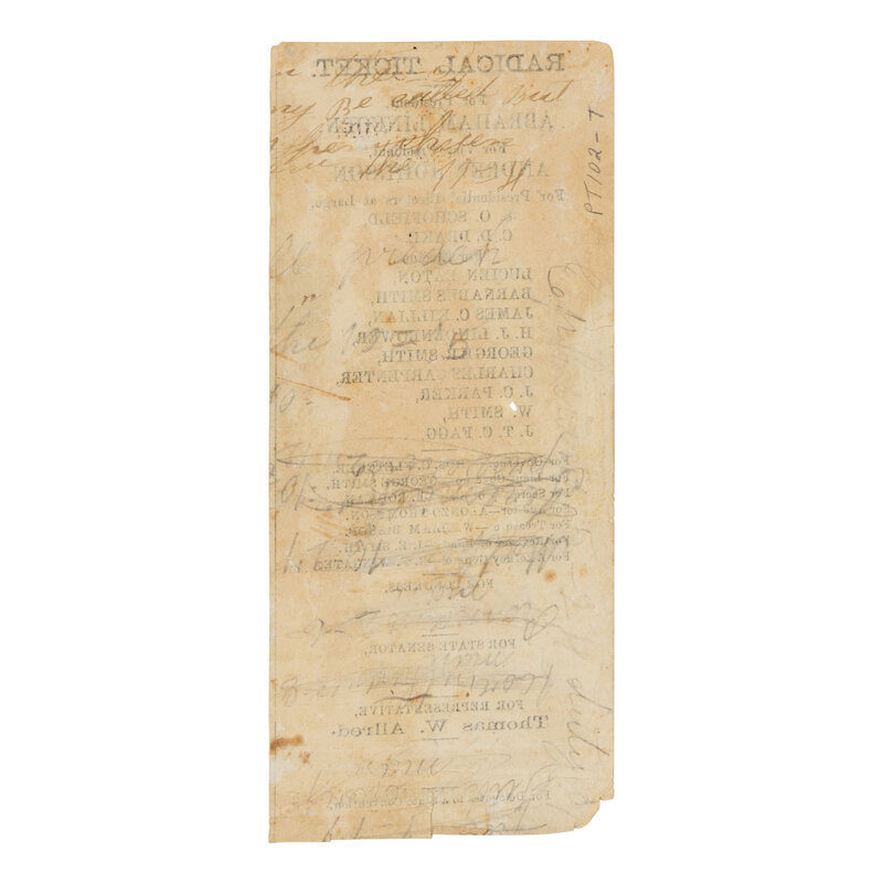 [LINCOLN-JOHNSON CAMPAIGN]. An election ballot for the "Radical Ticket." Missouri: n.p., 1864.