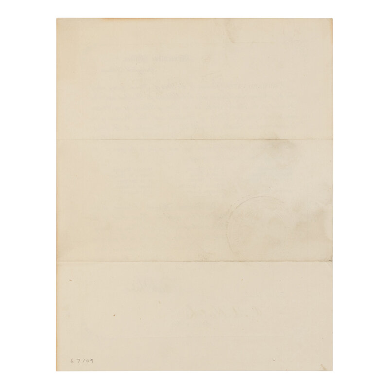 One page, 8vo (279 x 216 mm), very minor toning along extremities, folds, slight crease at one fold.