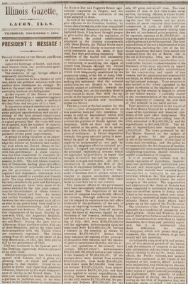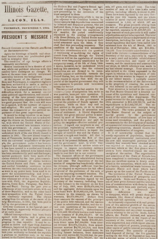 LINCOLN, Abraham (1809-1865). Illinois Gazette. Lacon, IL, 8 December 1864.