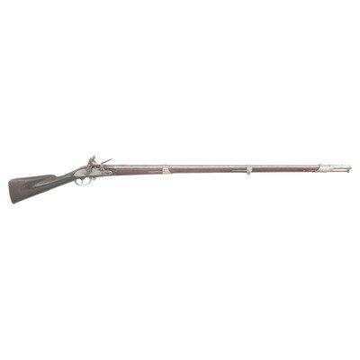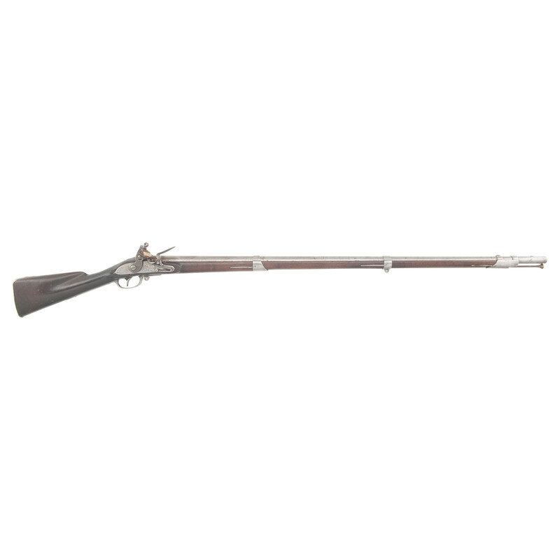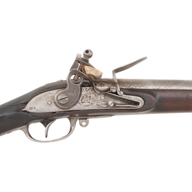 .72 caliber. 44.5" barrel. NSN. Bright finish, iron furniture, walnut stock. Single shot reconverted flintlock muzzleloading musket with brass blade front sight, socket bayonet lug on top of barrel, missing the sling swivels and with a reproduction iron ramrod. Reconverted flint lock with standard Springfield markings and dated 1812 at the tail. Buttplate tang dated 1812 as well. Breech marked US and with P/{Eagle Head}/V proofs. No visible cartouches. {ANTIQUE}