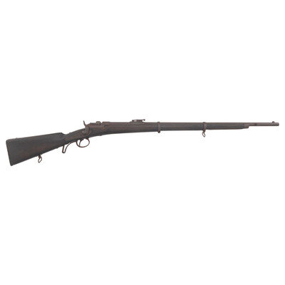11.15x42R. 33.25" barrel. NSN. Thickly oxidized metal, iron furniture, European hardwood stock. Single shot breechloading rotating breech Austrian military rifle with military ladder rear sight, Barleycorn front sight, saber bayonet lug and sling swivels. Missing cleaning rod. Lock dated 872 for 1872, no other markings are visible. Chamber appears straight and not upgraded for the bottlenecked 11.15x58 cartridge. {ANTIQUE}