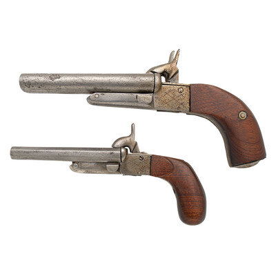 Two Continental Double Barrel Pin Fire Pistols