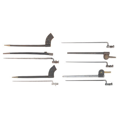 Five Post-Civil War Socket Bayonets & Scabbards, Including Joslyn Rifle, Winchester 1873 and Trapdoor