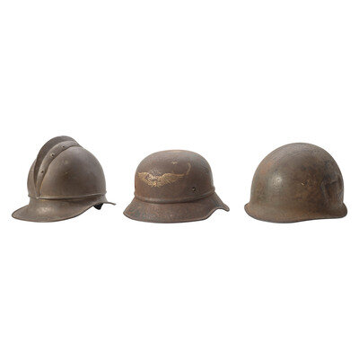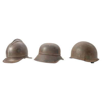 Lot of Three Helmets Including US M1 Shell, and Luftschutz Civil Defense Helmet