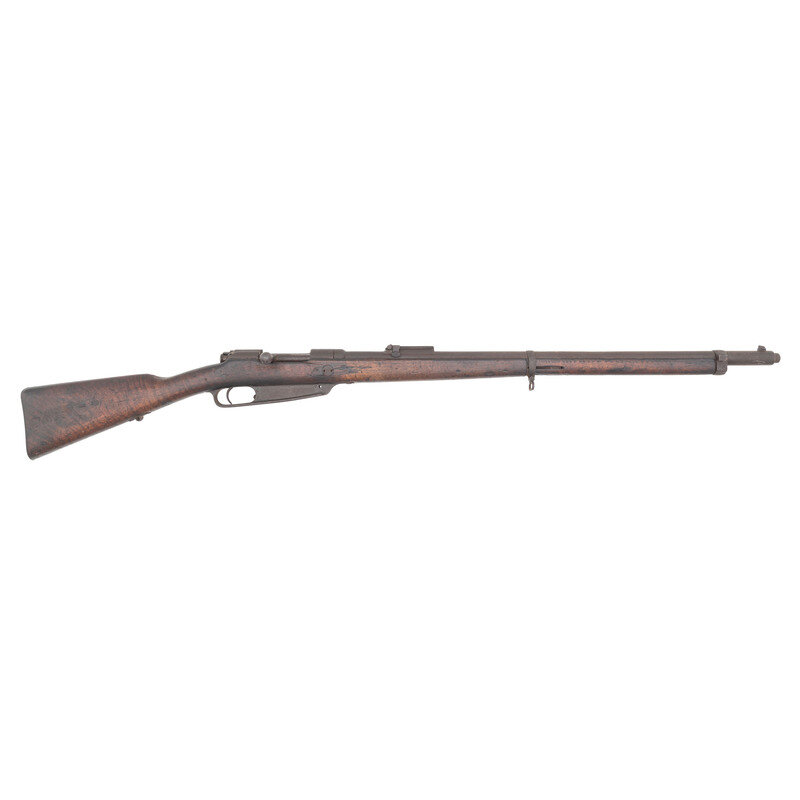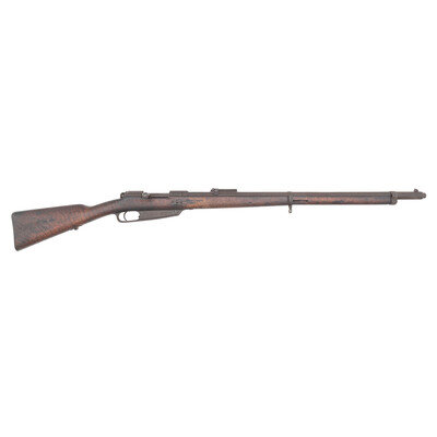 7.92mm. 29.1" barrel. 8998. Heavily oxidized metal, iron furniture, European hardwood stock. Bolt action fixed magazine repeating rifle with military ladder rear sight, fixed front sight blade, bayonet lug on upper barrel band, sling swivel on lower barrel band. Missing lower swivel and cleaning rod. Mismatched numbers, most markings illegible due to thick oxidation and patina. {ANTIQUE}