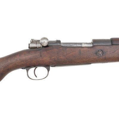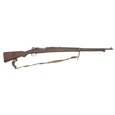 8mm Mauser. 32" barrel. SN: 114884. Blued finish, hardwood stock. Bolt action internal magazine rifle with ladder rear sight, blade front sight, sling swivels and missing the cleaning rod. Weak markings, mismatched numbers. Import marked by PW Arms. Includes a web sling. {C&R}
