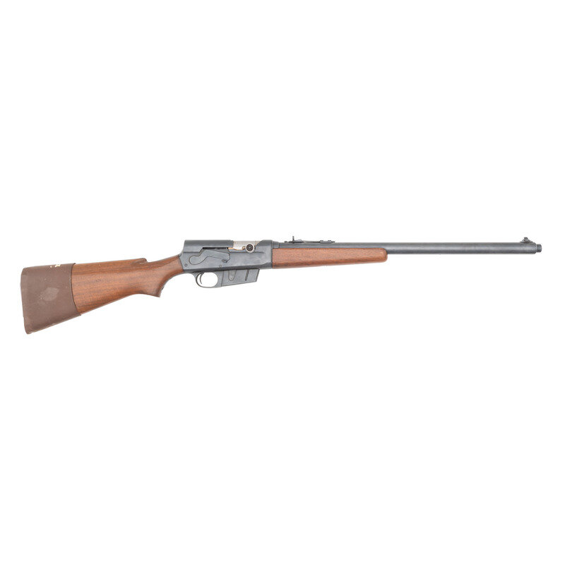 .35 Remington. 22" barrel. SN: 54202. Blued finish, smooth walnut pistol gripped stock with slip on Pachmayr recoil pad and smooth walnut forend. Semi-automatic magazine fed sporting rifle with elevation adjustable Marbles semi-Buckhorn rear sight and dovetailed front sight blade. Standard Remington markings. {C&R}
