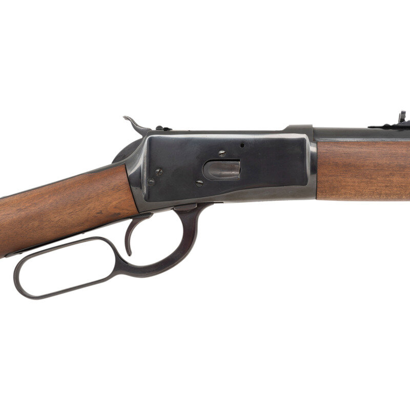 .480 Ruger. 20" barrel length. SN: MA026743. Blued metal finish overall mounting wood straight stock and forend fitted with rubber recoil pad. Lever action autoloading rifle fed by tubular magazine mounting rear semi-buckhorn sight and front bead sight featuring hammer block safety. Standard model and maker markings on tang. {MODERN}