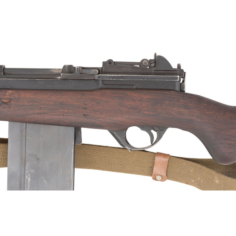 .308. 23.2" barrel length. SN: 3759. Blued metal finish mounting walnut semi pistol grip stock with full length upper handguard. Gas operated short stroke piston driven semi automatic rifle fed by detachable magazines and mounting rear ladder sight and front blade sight with protectors. Stock, bolt, and frame marked with matching 3759 serial number. Frame marked with standard model markings and manufacturer's address along with {Argentine Coat of Arms} on top of receiver in front of bolt. Stock marked with white 69 near base. Item includes canvas sling and two spare box magazines. {C&R}