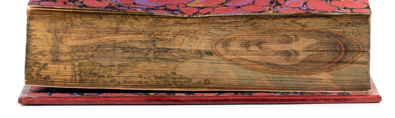 8vo. Illustrations by Hugh Thomson. Modern red calf gilt, all edges gilt, concealing a FORE-EDGE PAINTING of a portrait of Austen and a scene from Emma; original cloth bound in.