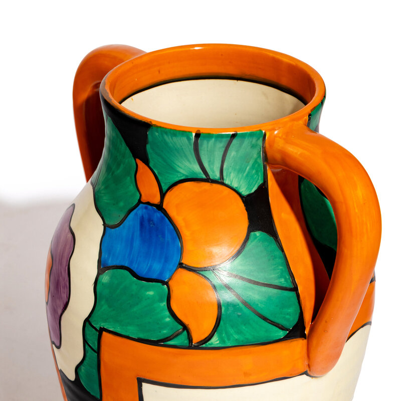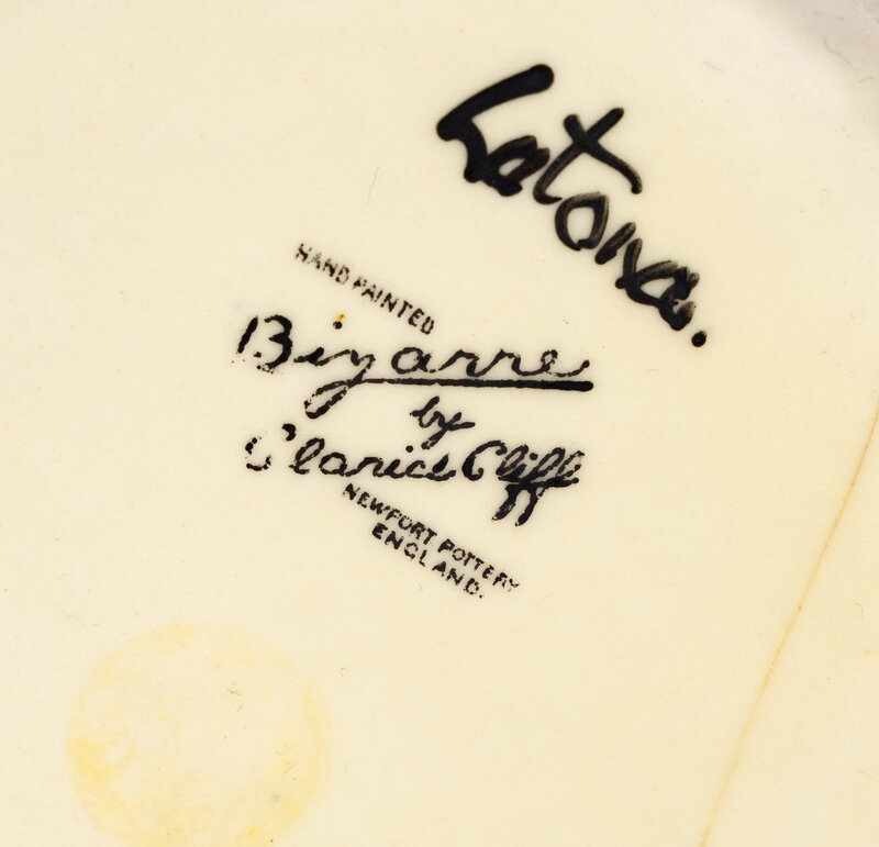 Stamped signature to underside ‘Latona. Hand Painted Bizarre by Clarice Cliff Newport Pottery England’.