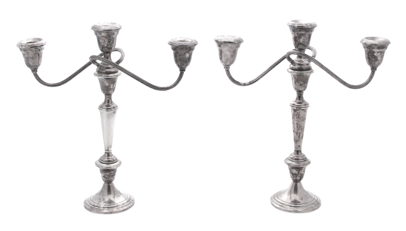 A Pair of American Weighted Silver Two-Light Candelabra