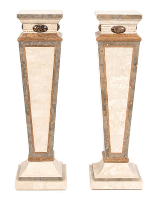 Four Italian Marble and Stone Veneered Pedestals Height 44 1/4 x width 13 x depth 13 inches.