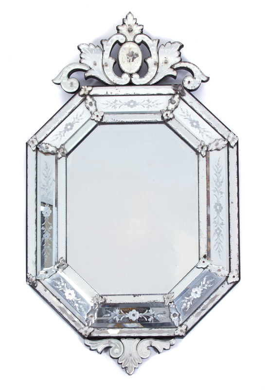 A Venetian Style Wall Mirror Height 49 x width 28 inches.