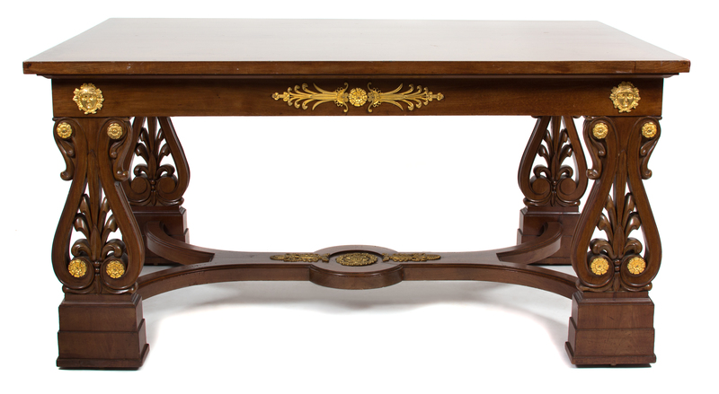 An Italian Neoclassical Style Mahogany Library Table Height 29 1/2 x width 59 x depth 39 1/4 inches.