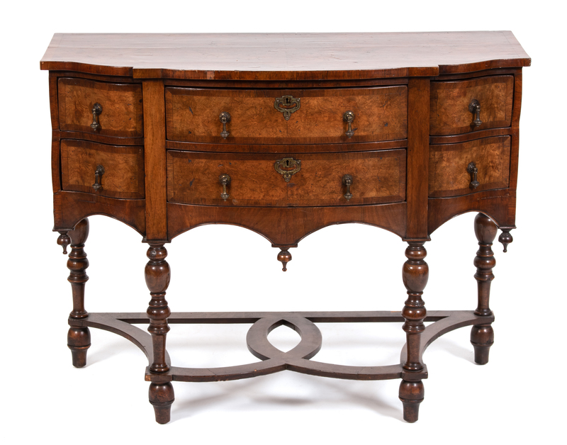 A Continental Inlaid Burlwood Side Cabinet Height 30 x width 39 x depth 17 3/4 inches.