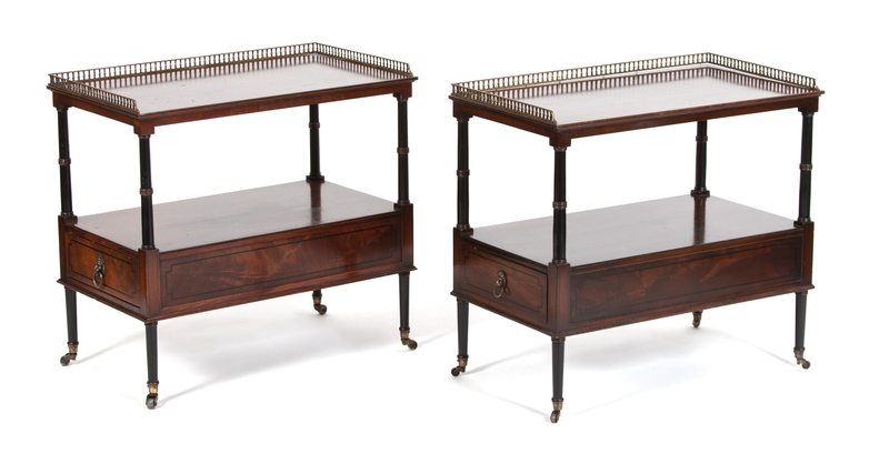 A Pair of English Regency Style Side Tables Height 25 1/2 x width 27 x depth 15 1/2 inches.