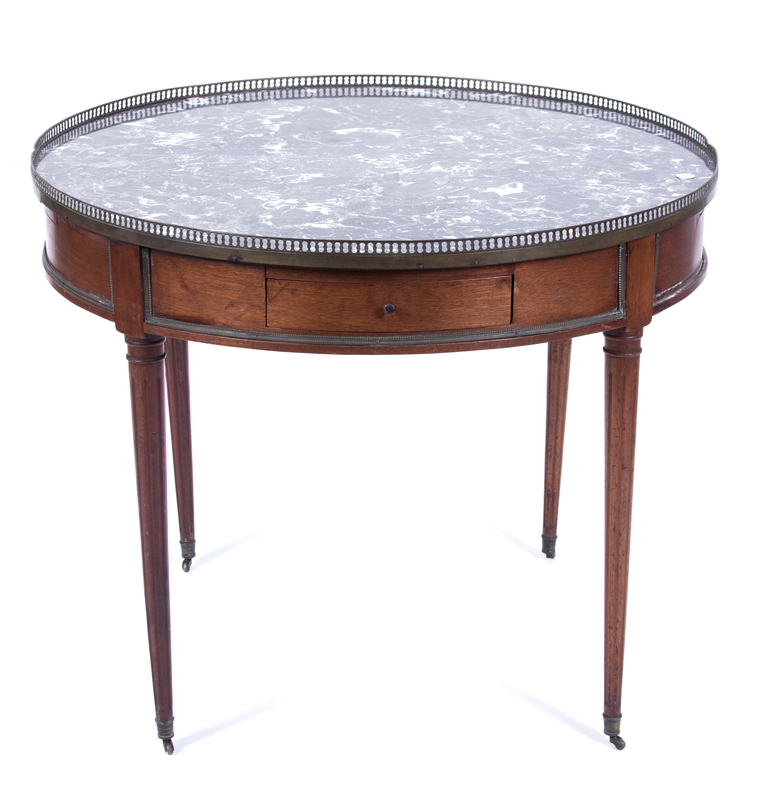 A Louis XVI Style Gueridon Bouillotte Table Height 29 1/2 x diameter 36 inches.