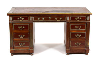 A French Empire Style Brass Mounted Pedestal Desk Height