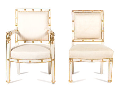 A Set of Four Empire Style Painted and Giltwood Chairs
