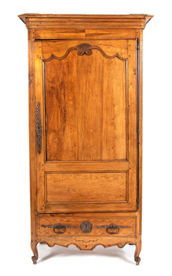A French Provincial Carved Fruitwood Armoire Height 83 1/2 x width 39 1/2 x depth 24 inches.