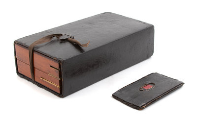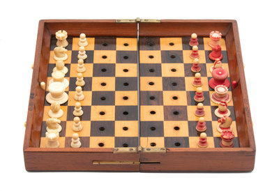 A French Chess Set in Leather Travel Case Length 10 inches.