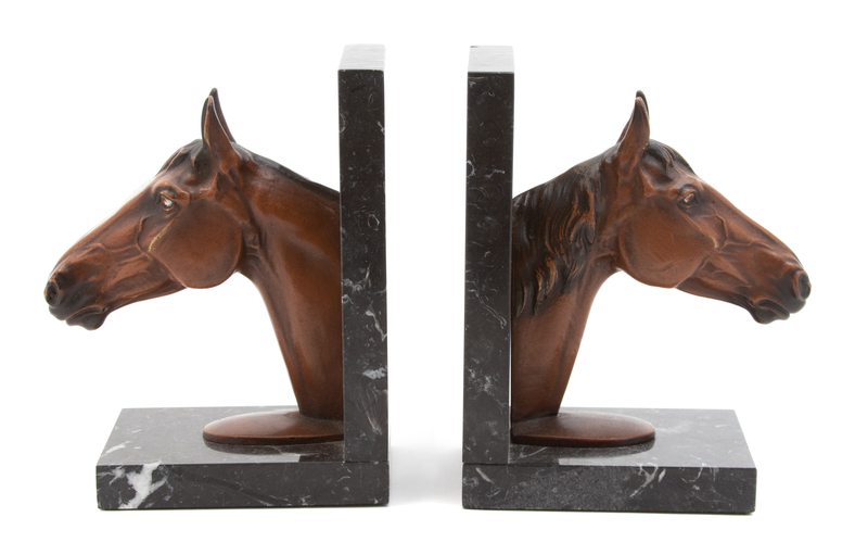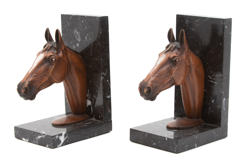 A Pair of Austrian Cold Painted Bronze Horsehead Bookends Height 7 inches.