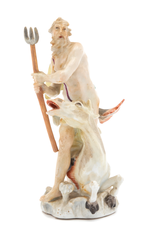 A Meissen Porcelain Allegorical Figure of Neptune with Hippocampus Height 6 1/8 inches.