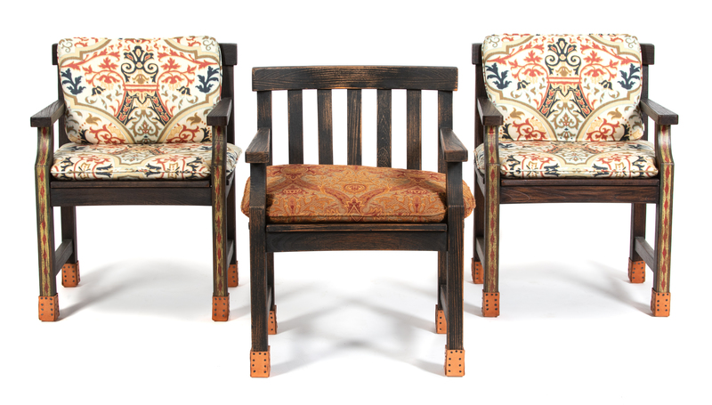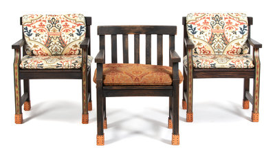 A Set of Eight Mizner Style Painted Armchairs Height 32 1/4 x width 23 x depth 19 inches.