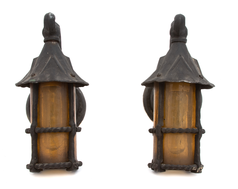 A Pair of English Iron Wall Sconces Height 10 1/4 inches.