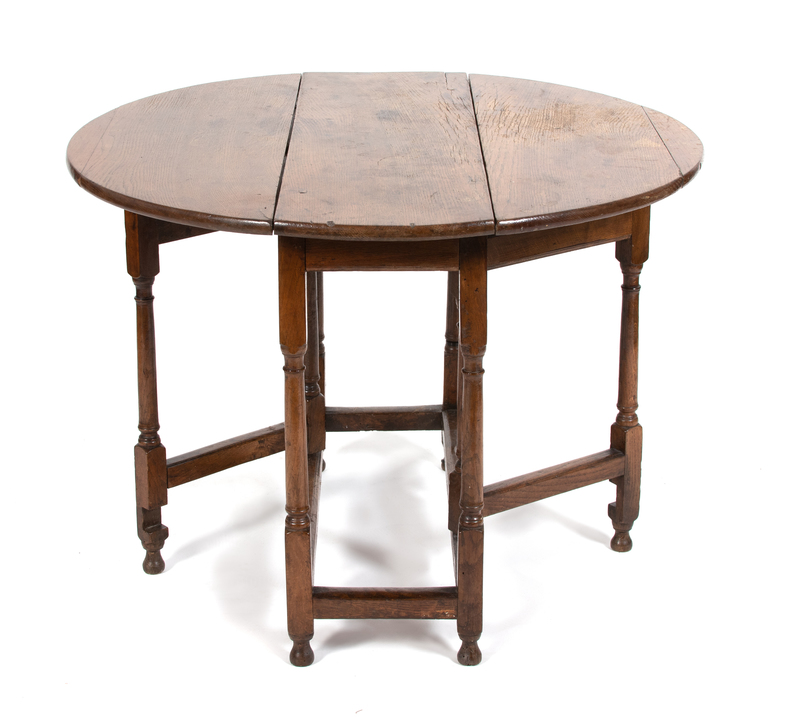An English Jacobean Style Oak Gate Leg Table Height 27 x width 38 x depth 12 1/2 inches (closed).
