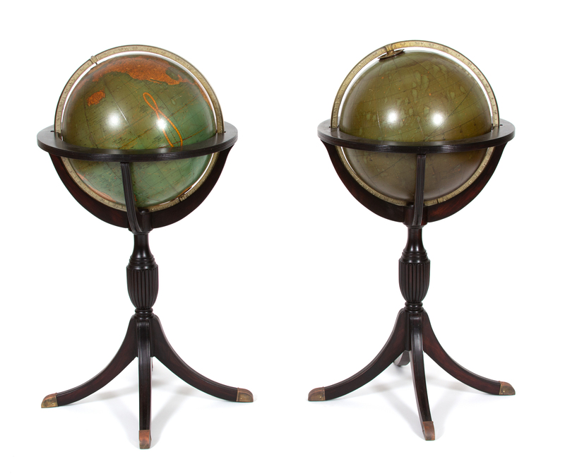 A Pair of Terrestial and Celestial Globes in Mahogany Tripod Stands