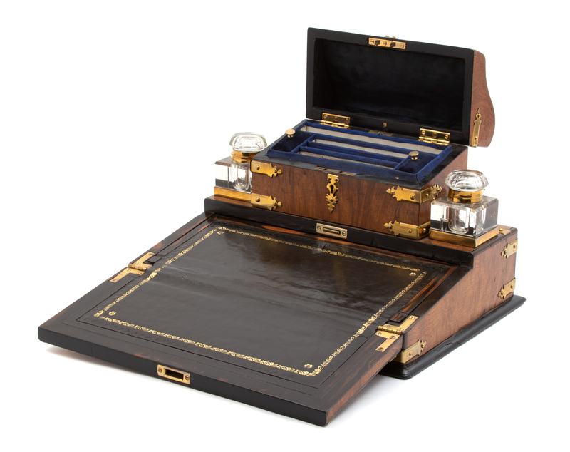 surmounted by a letter box and flanked by a pair of inkwells.