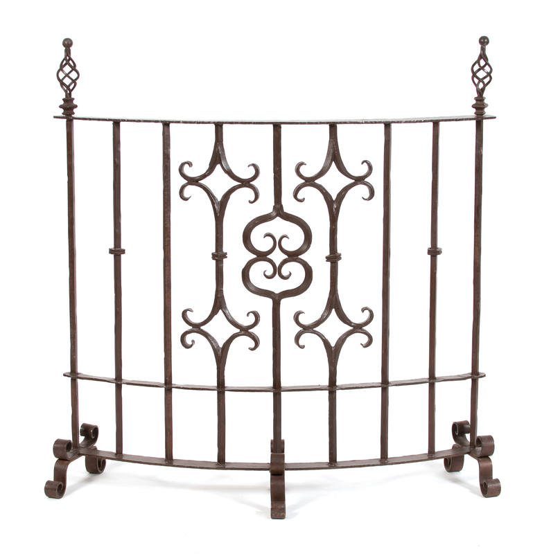 A Gothic Style Wrought Iron Fire Screen Height 48 x width 48 inches.