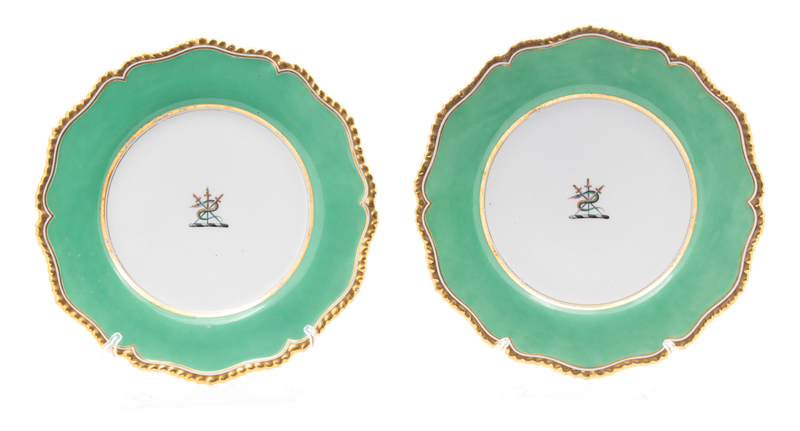 having an apple green border with gilt rim, center armorial.