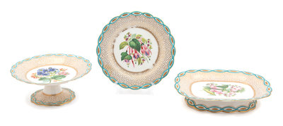 A Twelve-Piece English Porcelain Botanical Dessert Service Diameter of tazzas 3/4 inches.