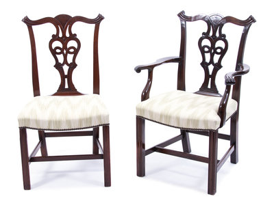 A Set of Twelve Hepplewhite Style Carved Mahogany Dining Chairs Height 37 1/2 inches.