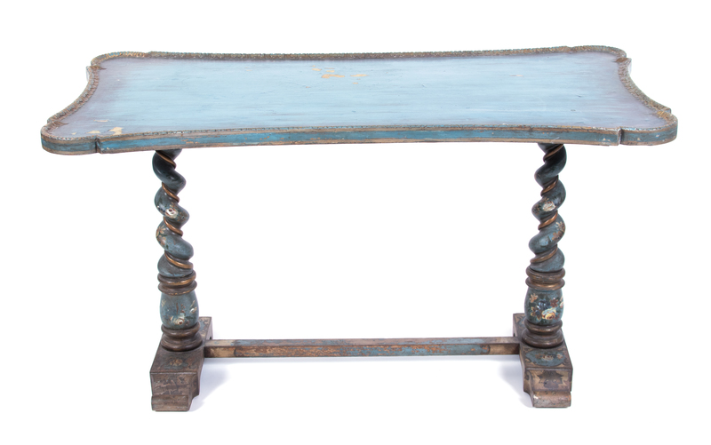 A Mizner Style Painted Table Height 28 x width 52 x depth 27 inches.