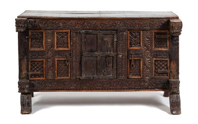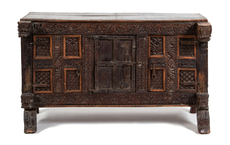 A Henry VIII Style Livery Cupboard Height 27 1/2 x width 43 x depth 24 1/2 inches.