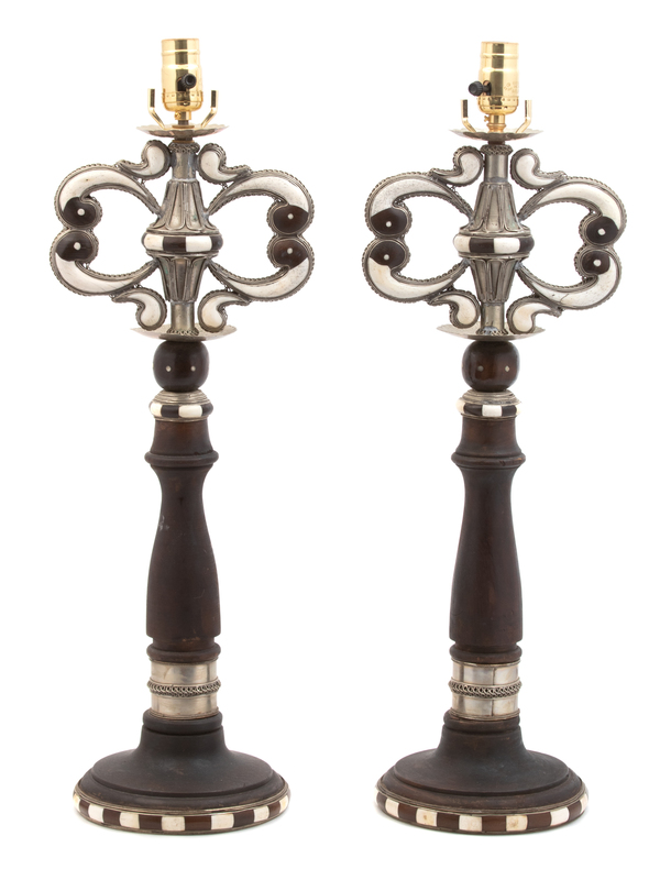 A Pair of Moroccan Inlaid Table Lamps Height 18 inches.